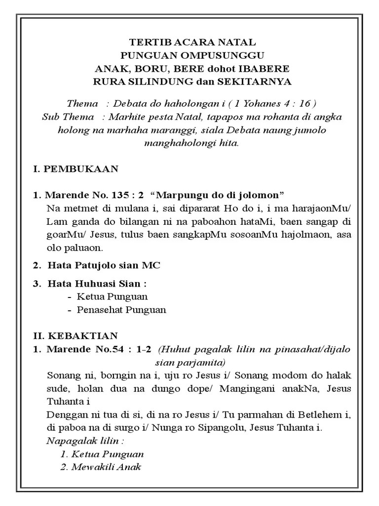 for "Tertib Acara Natal Ina Hkbp Dalam Bahasa Batak Lengkap Dengan Liturgi Dan Prolok / Tertib Acara Natal Bahasa Batak Cute766"